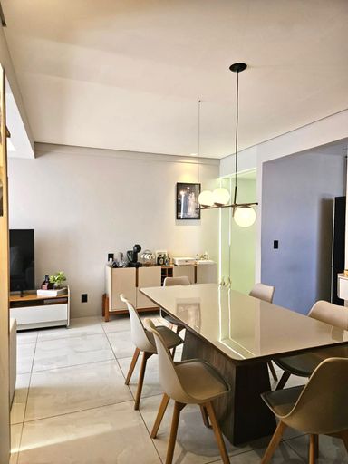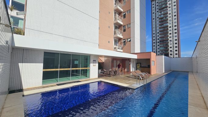 Apartamento residencial com 03 quartos, sendo 02 suítes, Wc social, sala de estar/jantar, varanda, cozinha, área de serviço, piso porcelanato , 01 vaga de garagem. Condomínio: com salão de festas, churrasqueira e piscina. Valor do condomínio incluso água e gás.