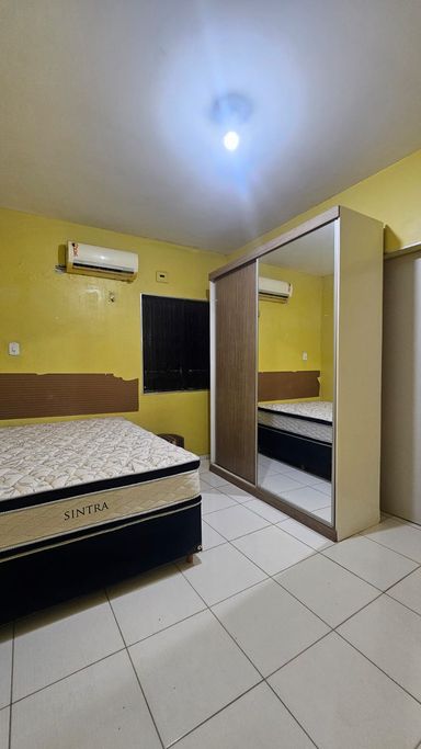 A locação é com a mobília: Geladeira Fogão Mesa com 04 cadeiras Guarda roupas Cama solteiro Cama casal 02 ar-condicionados